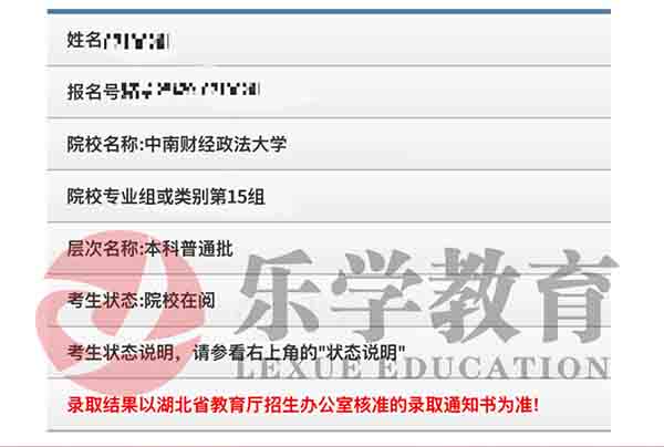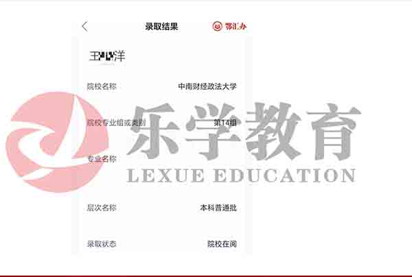2025届武汉乐学教育 李*轩同学 中南财经政法大学 物理方向619分