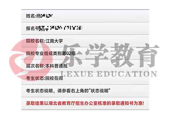 2025届武汉乐学教育 杨*同学 江南大学 物理方向622分