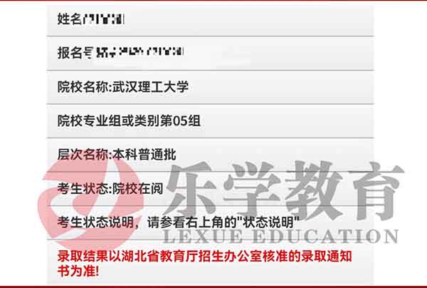 2025届武汉乐学教育 李*白同学 湖北大学