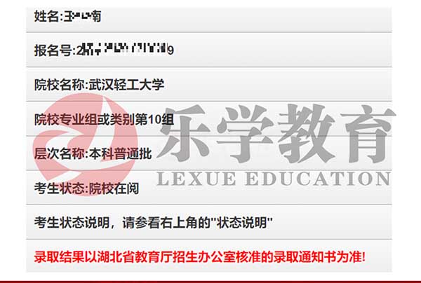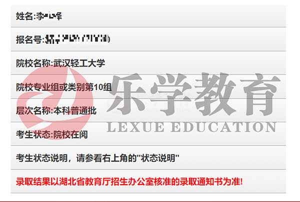 2025届武汉乐学教育 李*泽同学 武汉轻工大学