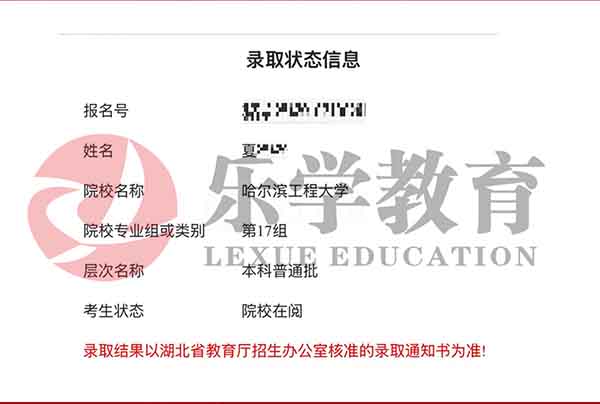 2025届武汉乐学教育 夏*皓同学 哈尔滨工程大学
