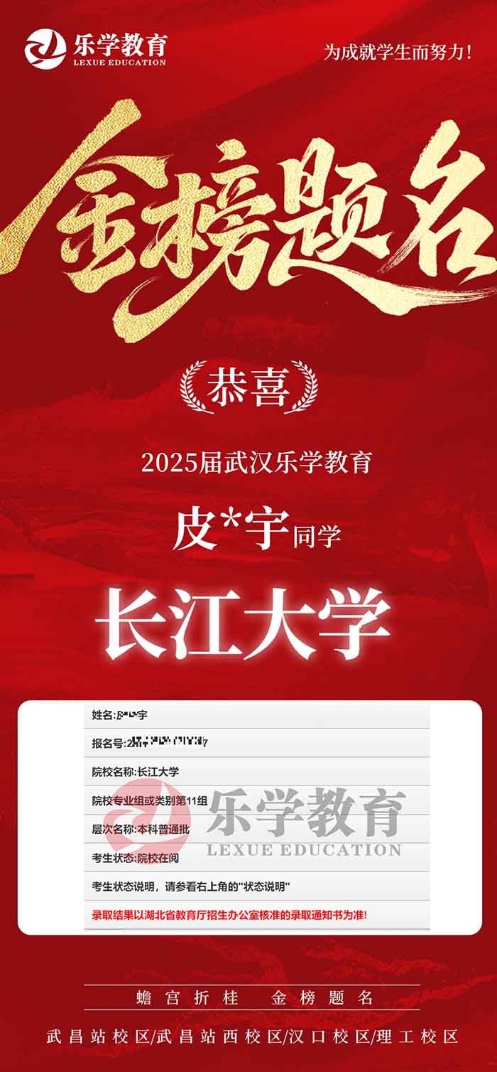 2025届武汉乐学教育 皮*宇同学 长江大学