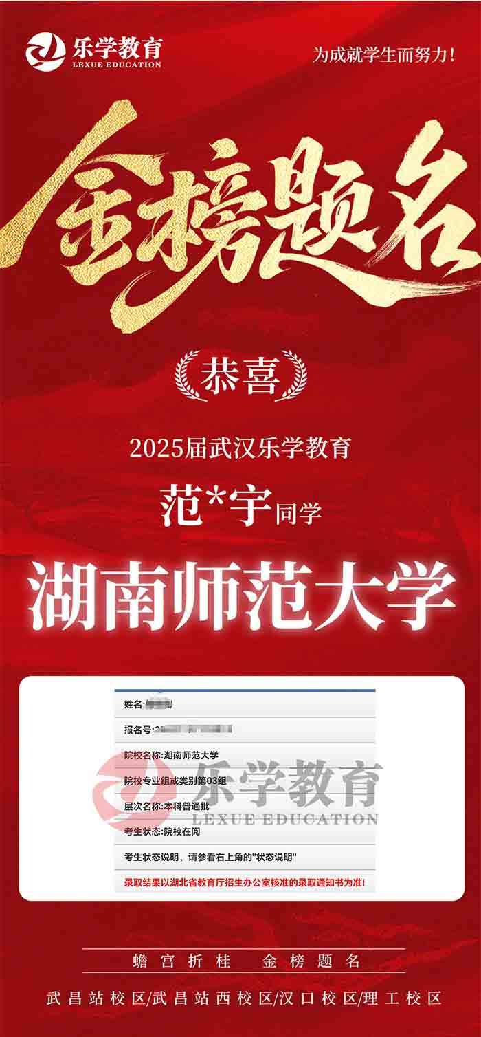 2025届武汉乐学教育 范*宇同学 湖南师范大学