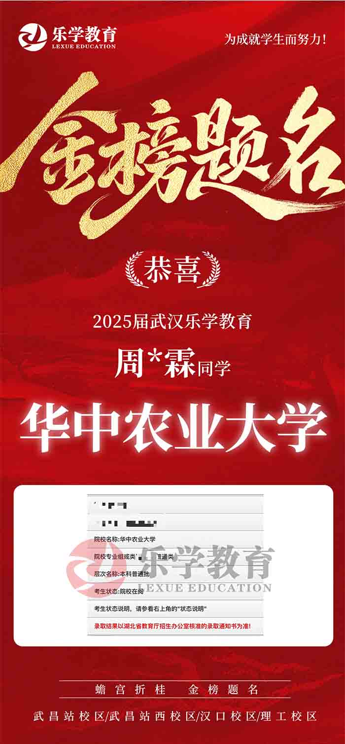 2025届武汉乐学教育 周*霖同学 华中农业大学